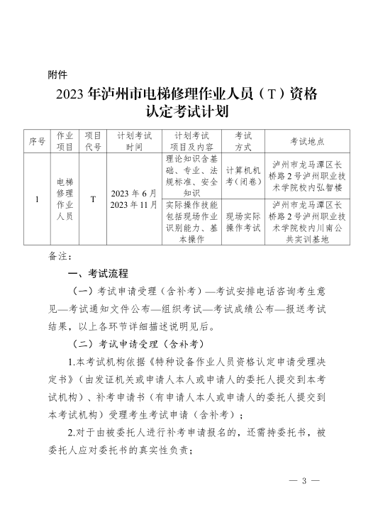 瀘州市經(jīng)緯職業(yè)培訓(xùn)學(xué)校有限公司關(guān)于公布2023年度電梯修理作業(yè)人員(T)資格認(rèn)定考試計(jì)劃的通知