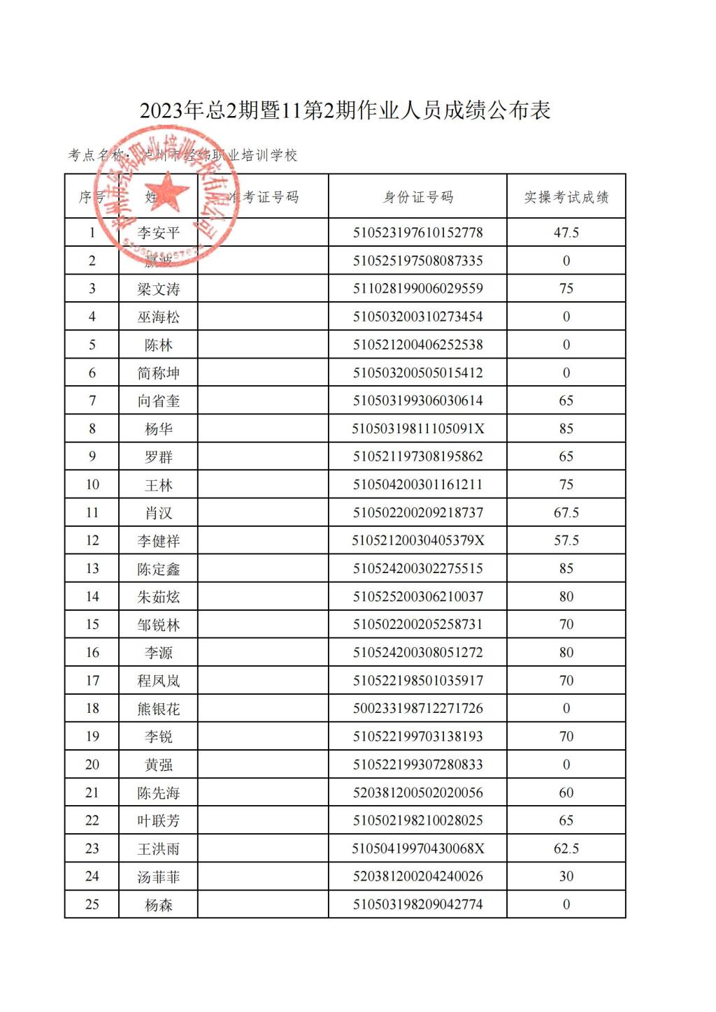 2023年總2期暨11第2期作業(yè)人員成績公布表