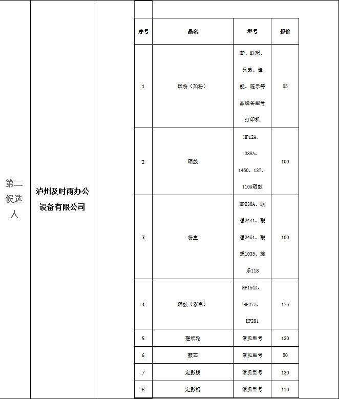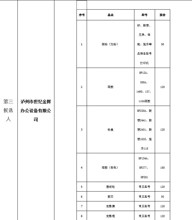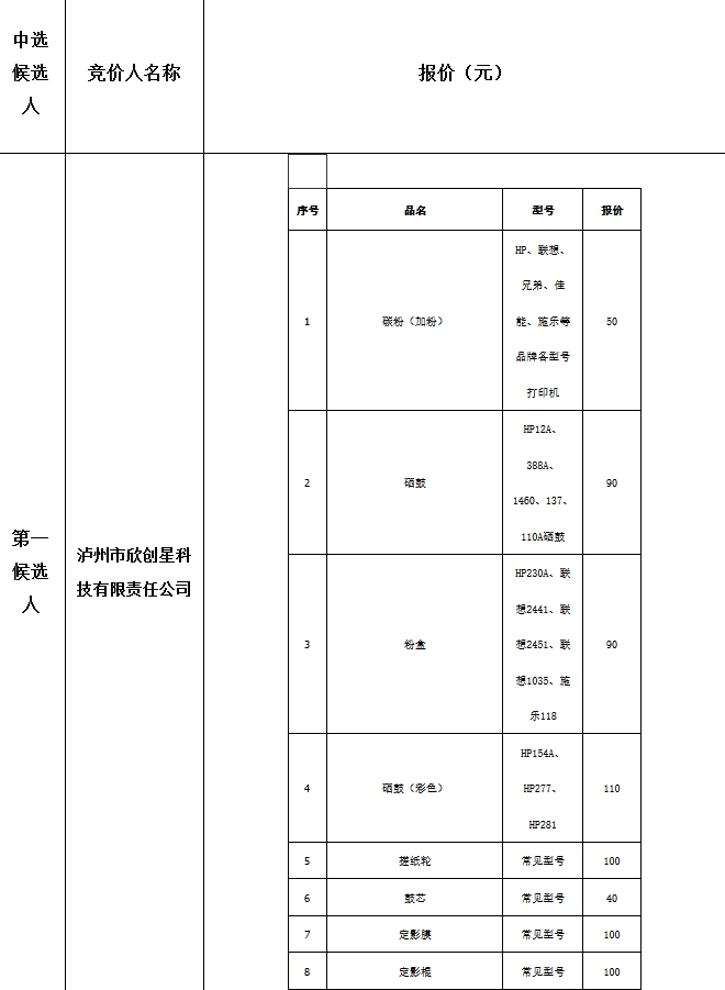 瀘州經(jīng)緯翰楨商貿(mào)有限公司辦公設(shè)備的加粉、加墨耗材及維修服務(wù)項(xiàng)目結(jié)果公告